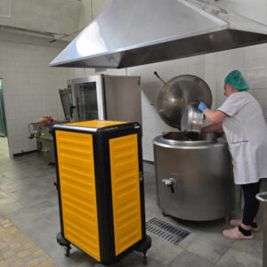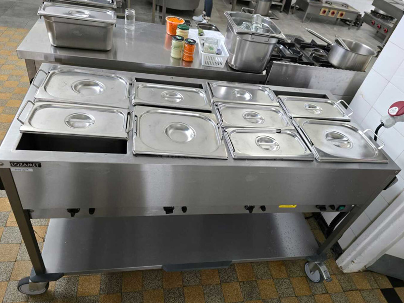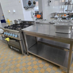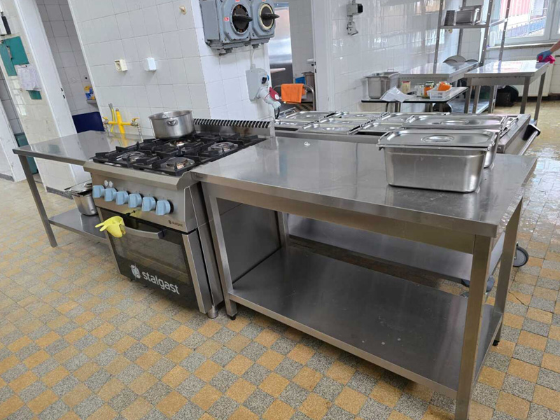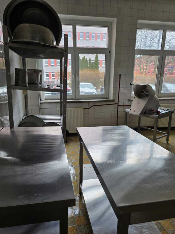 Zastępca Dyrektora ds. Techniczno-Gospodarczych – Mateusz Olczak poinformował o zakupie nowoczesnego sprzętu, stanowiącego profesjonalne wyposażenie kuchni, między innymi: patelnia elektryczna przechylna, kuchnia gazowa z piekarnikiem elektrycznym, kotły warzelne parowe, bemar jezdny czterokomorowy z półką, warnik do wody, piec konwekcyjno-parowy, pojemniki do obróbki termicznej, garnki, miski ze stali nierdzewnej, szafy chłodzące, lodówki podblatowe, zmywarki, okapy kuchenne, stoły gastronomiczne, szatkownice do warzyw, krajalnice do wędlin, termos do żywności na kółkach z metalowym stelażem, pojemnik cateringowy termoizolacyjny czy też regały nierdzewne i magazynowe.