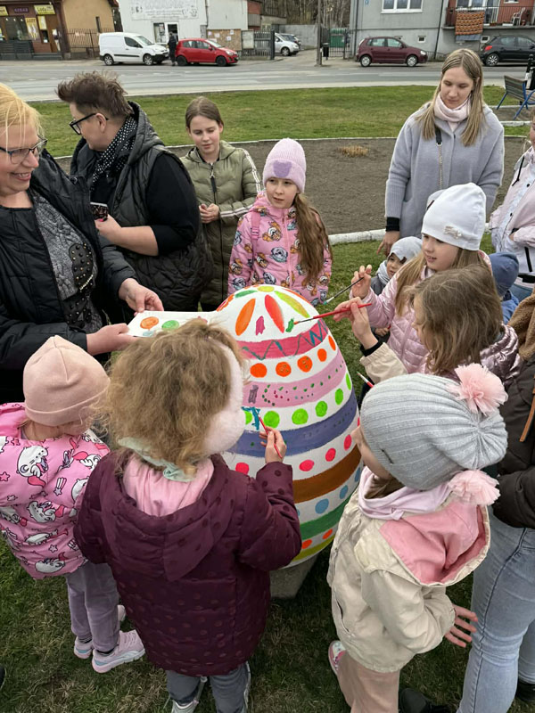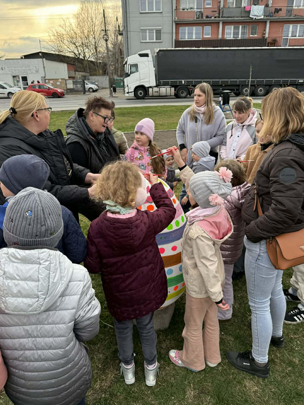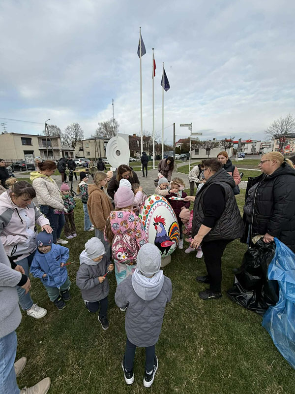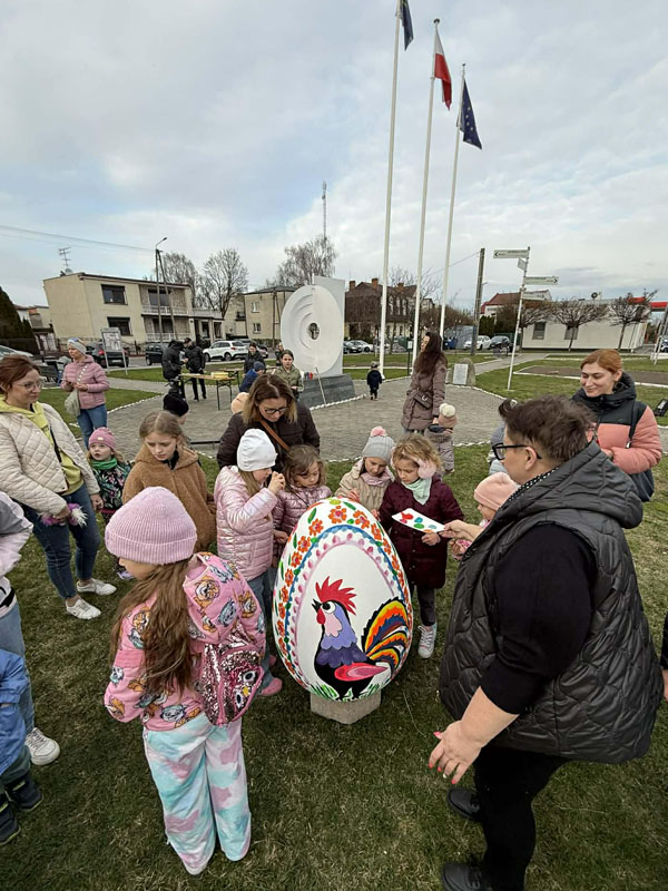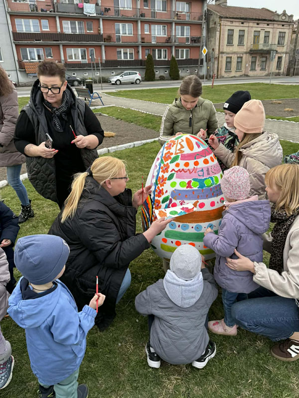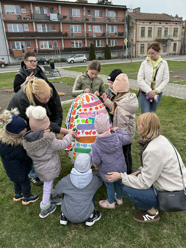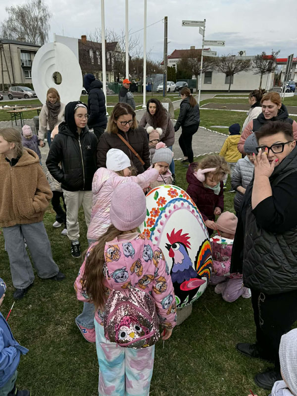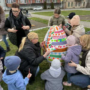 Nie brakowało pomysłów, a co ważniejsze – dobrego humoru – który towarzyszył uczestnikom wczorajszej akcji. Dzieci wykazywały się kreatywnością i kolorowały pisanki zgodnie z własnymi pomysłami, a tych było mnóstwo. Zwieńczeniem artystycznych zmagań było kolorowanie wielkiej pisanki, która zdobi Geometryczny Środek Polski.