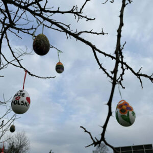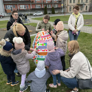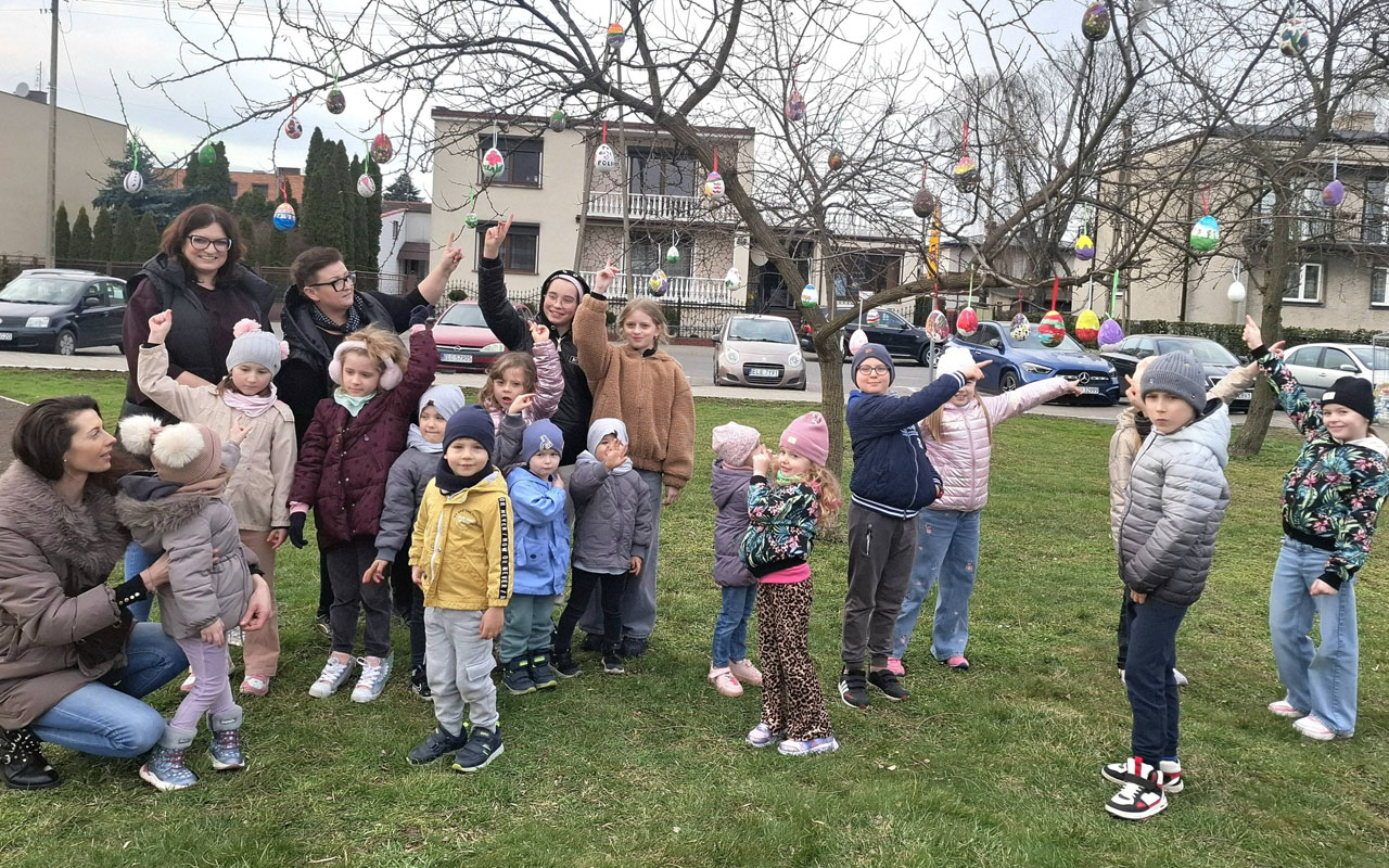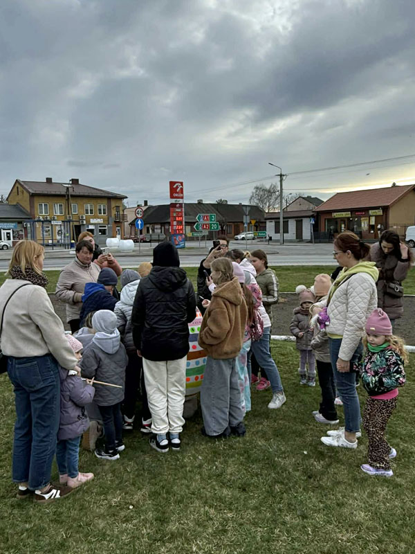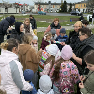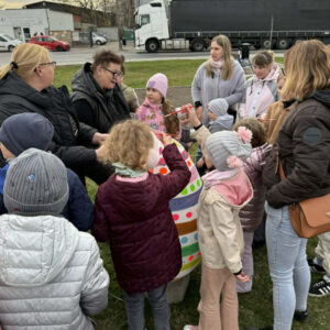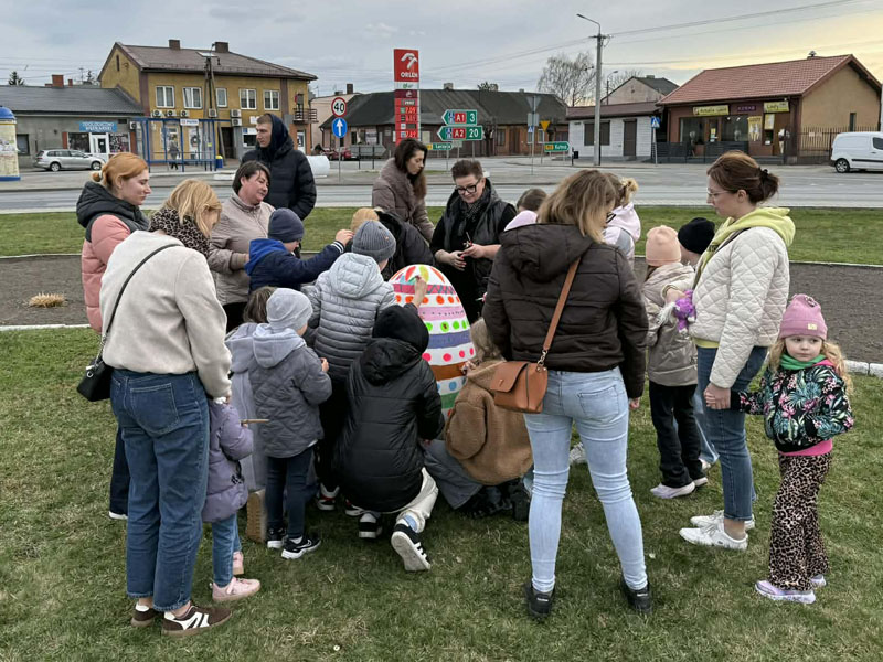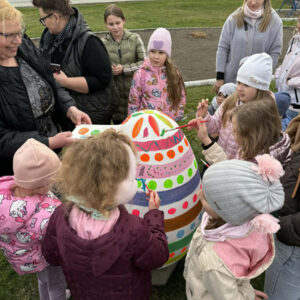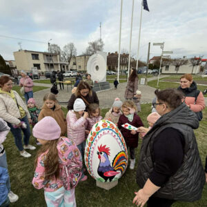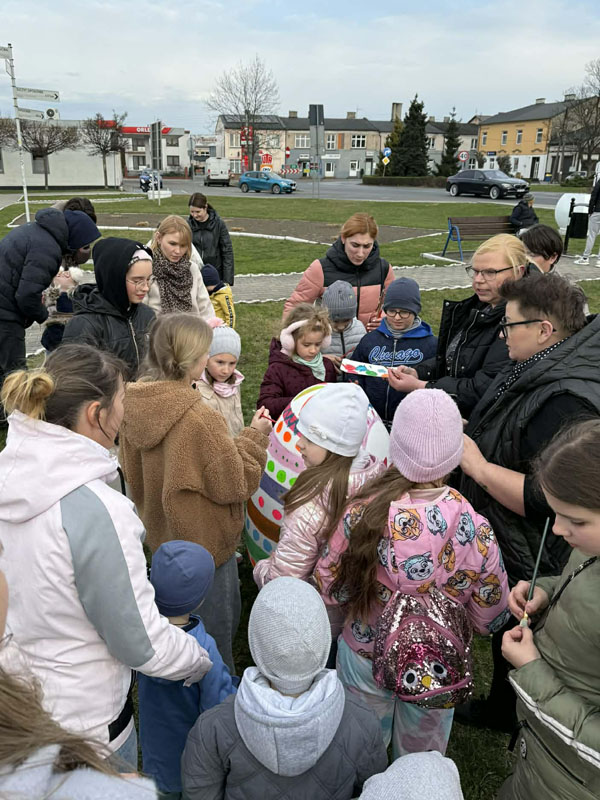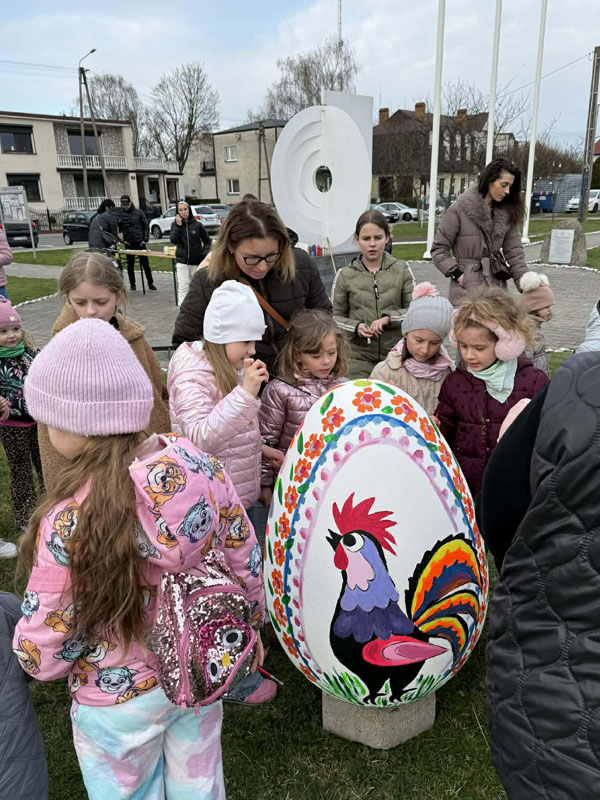 Nie brakowało pomysłów, a co ważniejsze – dobrego humoru – który towarzyszył uczestnikom wczorajszej akcji. Dzieci wykazywały się kreatywnością i kolorowały pisanki zgodnie z własnymi pomysłami, a tych było mnóstwo. Zwieńczeniem artystycznych zmagań było kolorowanie wielkiej pisanki, która zdobi Geometryczny Środek Polski.
