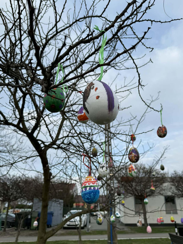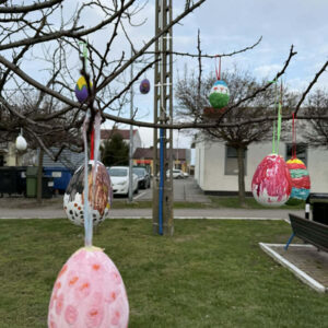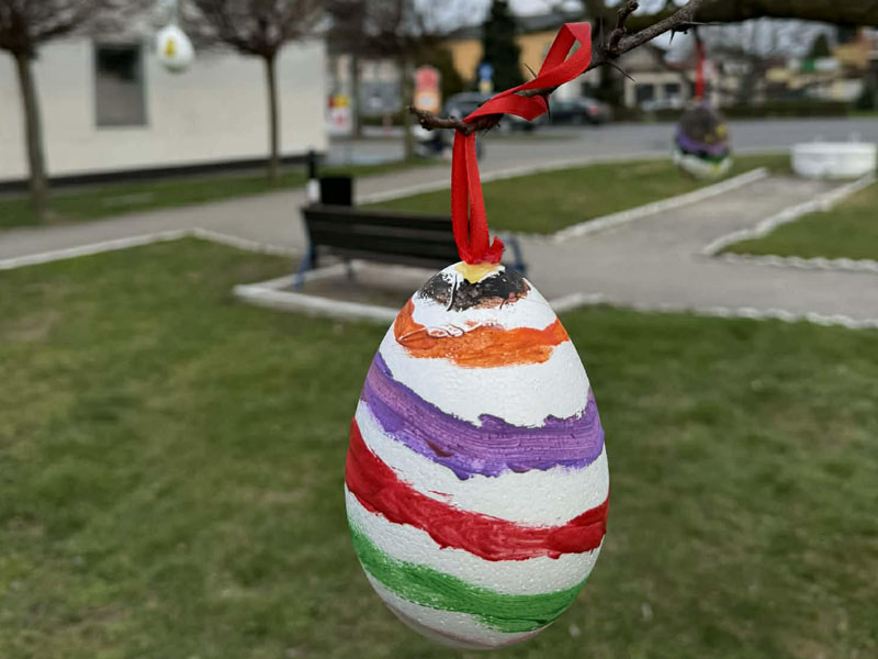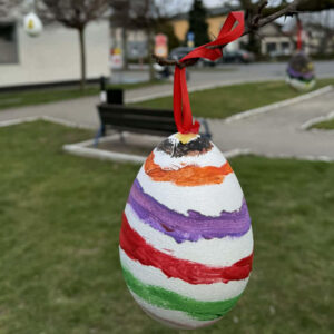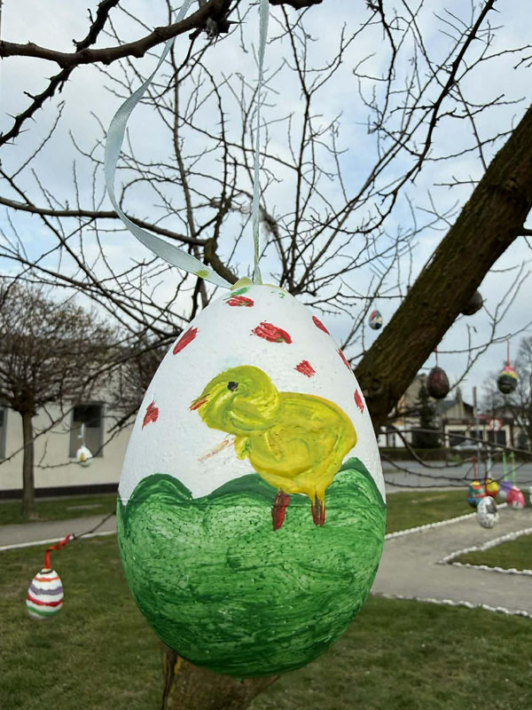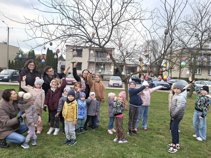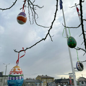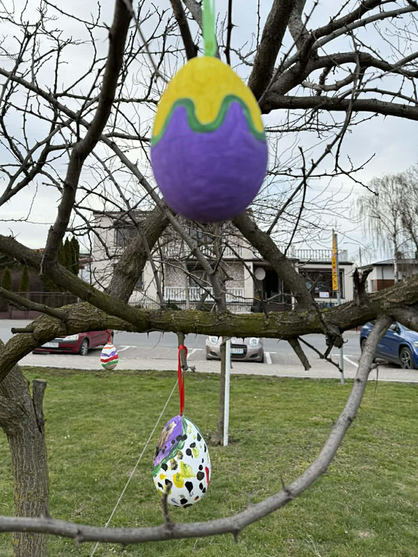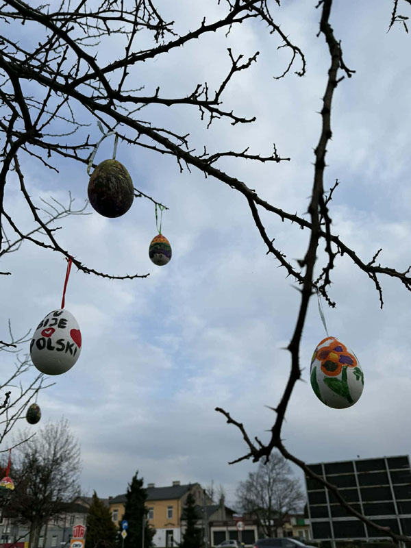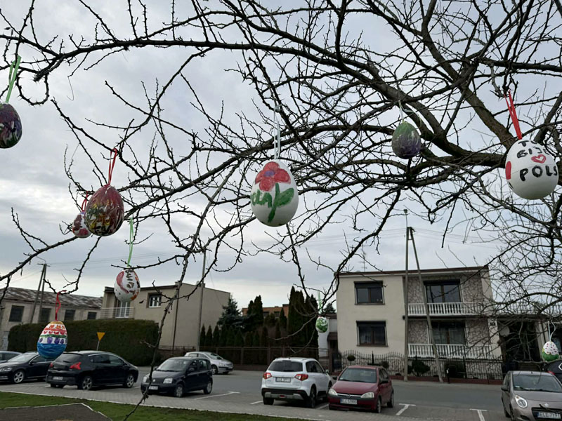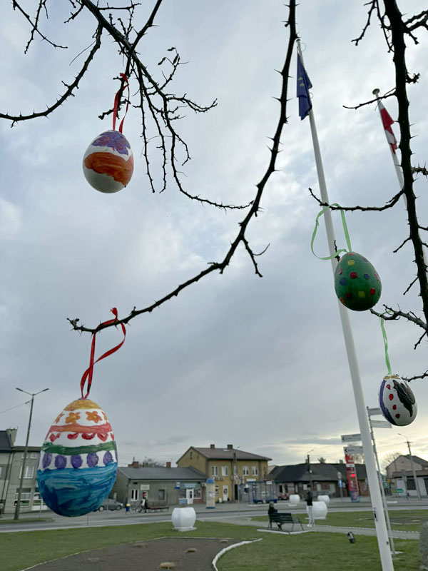 Piątek przygotowany jest już na Święta Wielkanocne W poniedziałek 30 marca, za sprawą Gminnego Ośrodka Kultury w Piątku, na skwerku odbyła się Akcja Pisanka, w ramach której dzieci udekorowały centrum wielkanocnymi pisankami