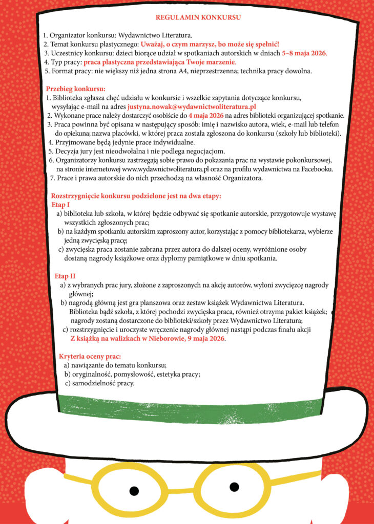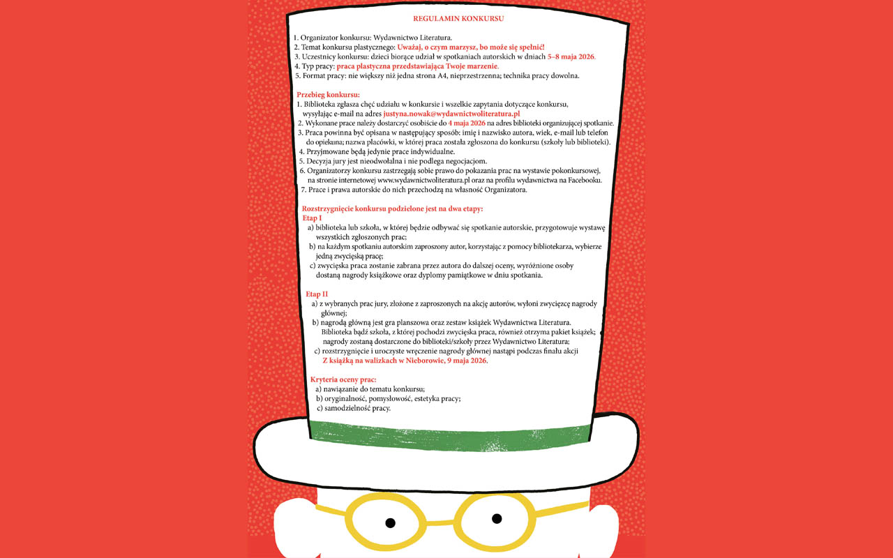 Gotowe prace należy dostarczyć osobiście do 4 maja do siedziby biblioteki. Nie przegapcie tej magicznej okazji do spotkania z literaturą!