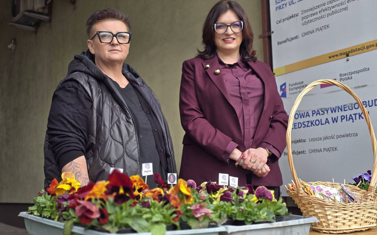 W piątek, 20 marca od godziny 11:00 przy Urzędzie Miejskim Burmistrz Anna Matusiak i dyrektor Gminnego Ośrodka Kultury w Piątku Beata Gawryszczak rozdawały kolorowe bratki oraz nasiona kwiatów, jako symbole powitania wiosny.