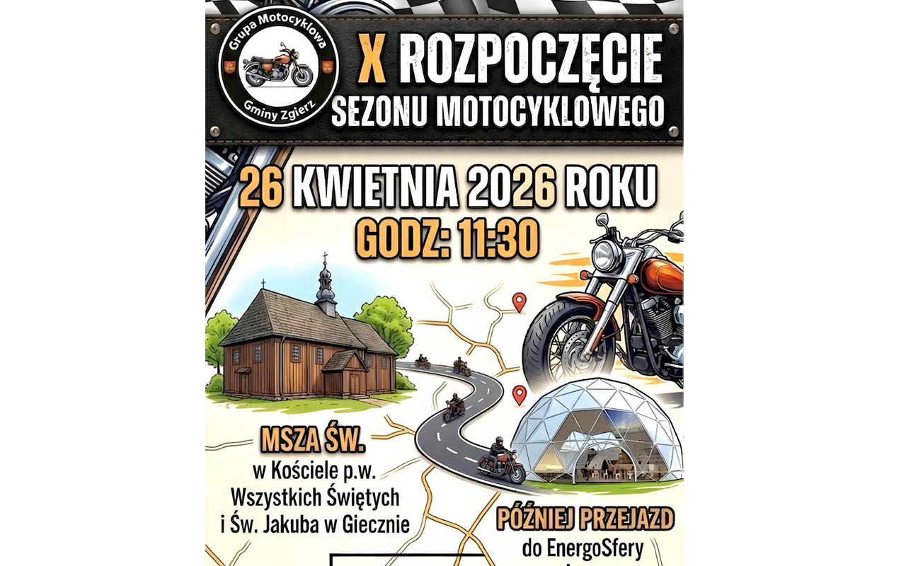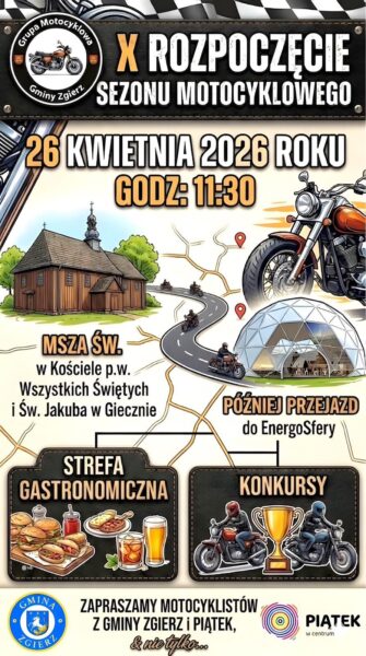 W imieniu Grupy Motocyklowej Gminy Zgierz, informujemy o X Rozpoczęciu Sezonu Motocyklowego w Giecznie dnia 26.04.2026r.